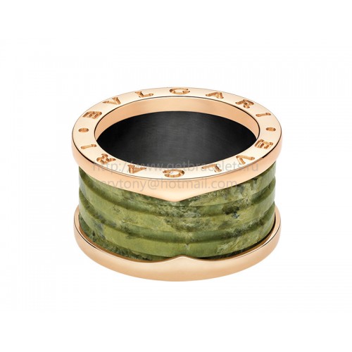 Златен пръстен Bvlgari B.zero1 с 4 ленти и зелен мрамор