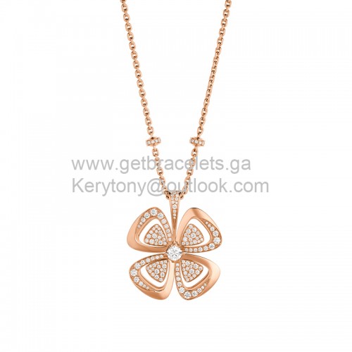 Колие Bvlgari Fiorever с четирилистно цвете и диаманти, розово злато и бяло злато, високо качество