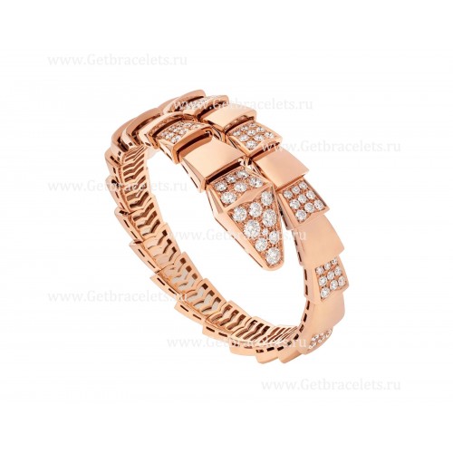 Гривна Bvlgari Serpenti Viper с една намотка от 18-каратово розово злато с диаманти Demi Pave