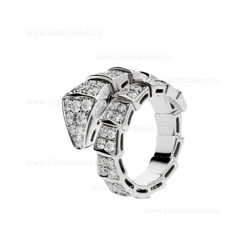 Пръстен Bvlgari Serpenti Viper с една намотка от 18-каратово бяло злато с диаманти с пълно паве