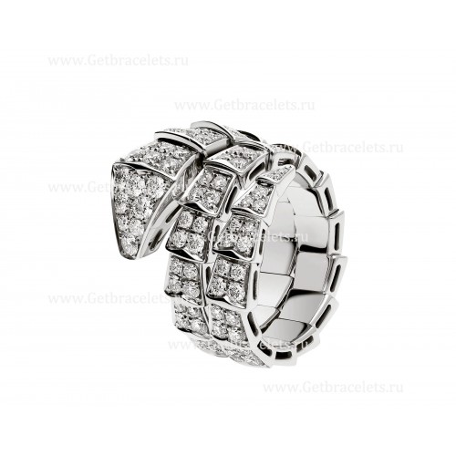 Пръстен Bvlgari Serpenti Viper с две намотки от 18-каратово бяло злато с диаманти с пълно паве