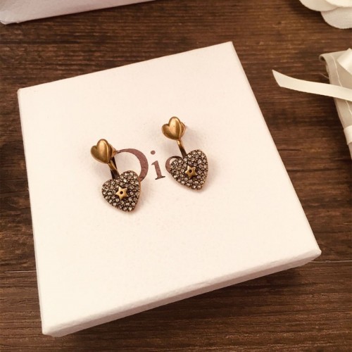 Дамски обеци Christian Dior с украсени диаманти във формата на сърце, състарени месингови елементи и детайл от звезда
