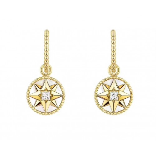 Дамски обеци Dior Rose Des Vents MOP с осемлъчева звезда и диаманти, жълто злато