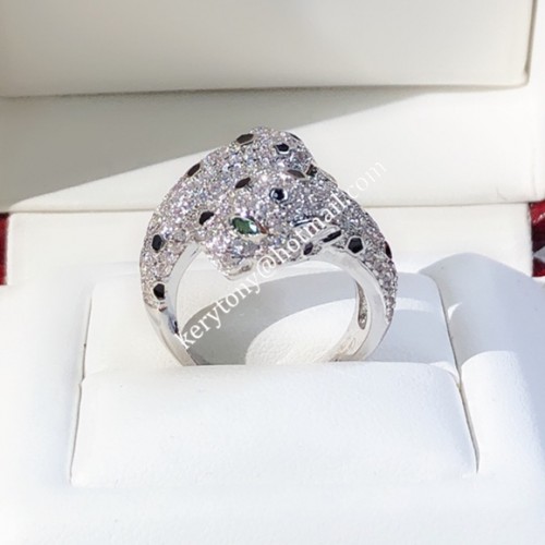 Име на продукта:Пръстен „Двойна пантера дьо Картие“ от бяло злато с диаманти Материал:Титаниева стомана 316L + 18K златно покритие Цвят:Жълто злато/Бяло злато/Черна керамика Характеристики на материала:Никога не избледняват, могат да се носят под вода