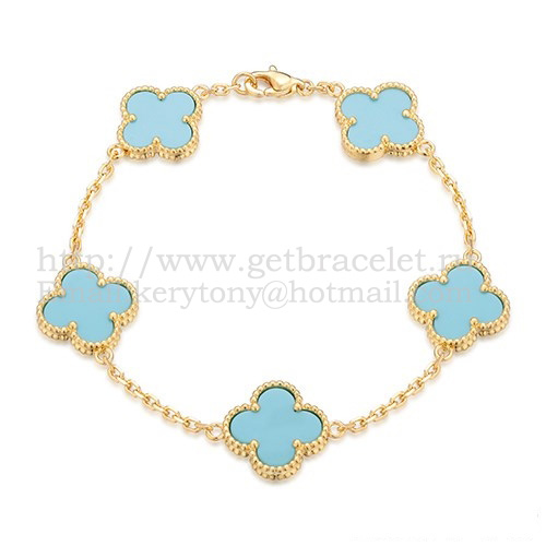• Гривна Van Cleef Arpels Alhambra с 5 мотива, жълто злато с тюркоаз и седеф