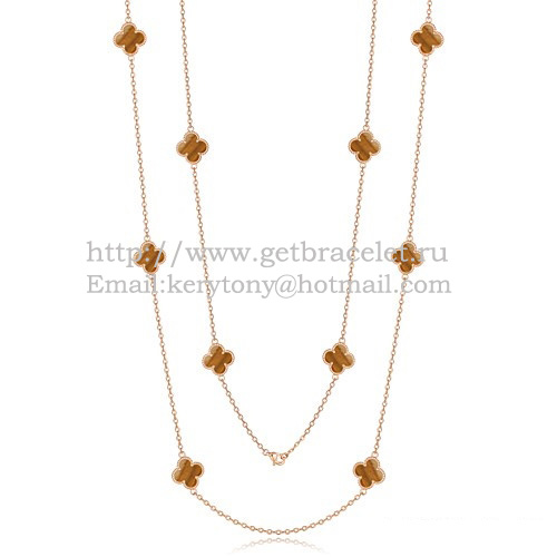Колие Van Cleef Arpels Alhambra от розово злато, 10 мотива с тигрово око и седеф