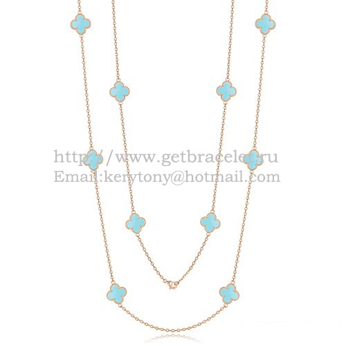 Колие Van Cleef Arpels Alhambra от розово злато, 10 мотива с тюркоазена седефка