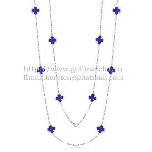 Колие Van Cleef Arpels Alhambra от бяло злато, 10 мотива с лапис и седеф