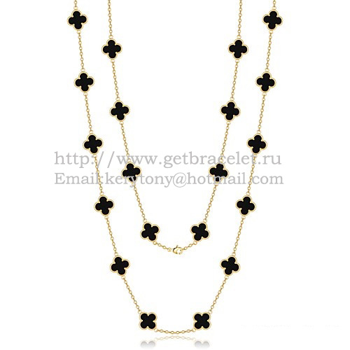 Колие Van Cleef Arpels Alhambra от жълто злато, 20 мотива с черен ахат и седеф