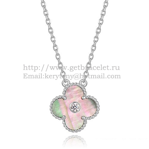 Висулка Van Cleef Arpels Alhambra от бяло злато със сив седеф и кръгли диаманти