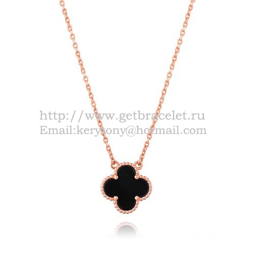 Висулка Van Cleef Arpels Alhambra от розово злато с черен ахат, седеф 15 мм