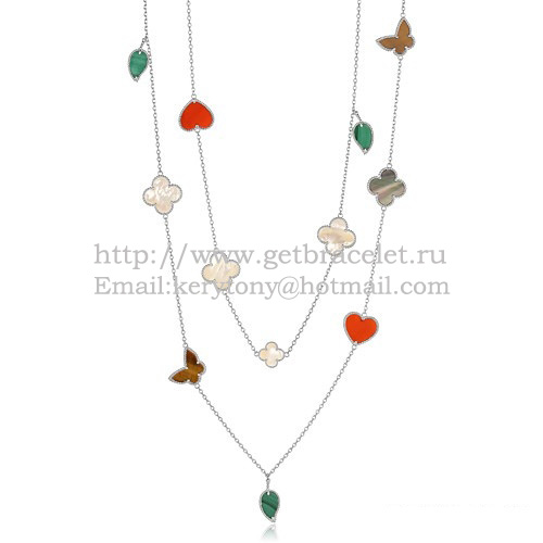 Дълго колие Van Cleef Arpels Lucky Alhambra от бяло злато, 12 мотива и комбинация от камъни