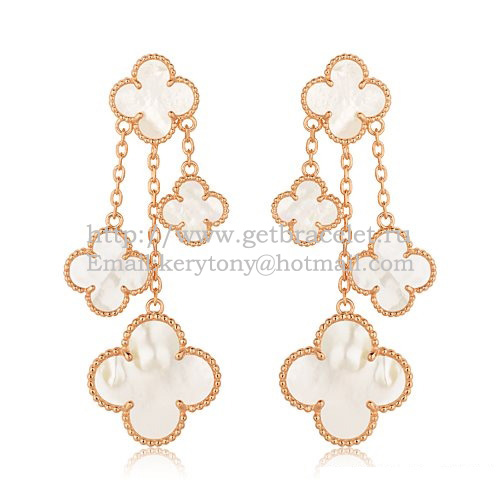 Обеци Van Cleef Arpels Magic Alhambra с 4 мотива, розово злато и бял седеф