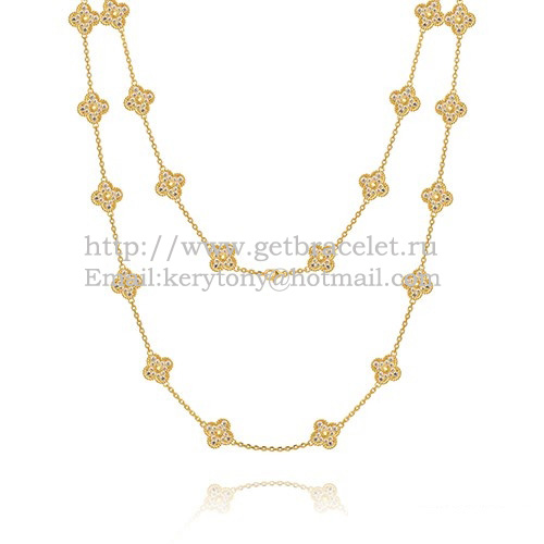 Дълго колие Van Cleef Arpels Alhambra от жълто злато, 20 мотива с диаманти Pave
