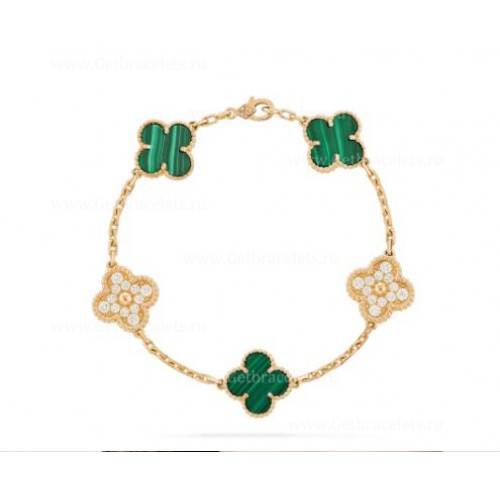 Гривна Van Cleef Arpels Alhambra 5 мотива с диаманти и малахит
