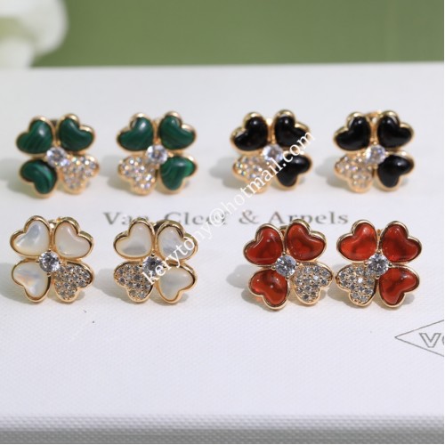 Обеци Van Cleef Arpels Cosmos от розово злато с диаманти, бели/червени/черни/зелени
